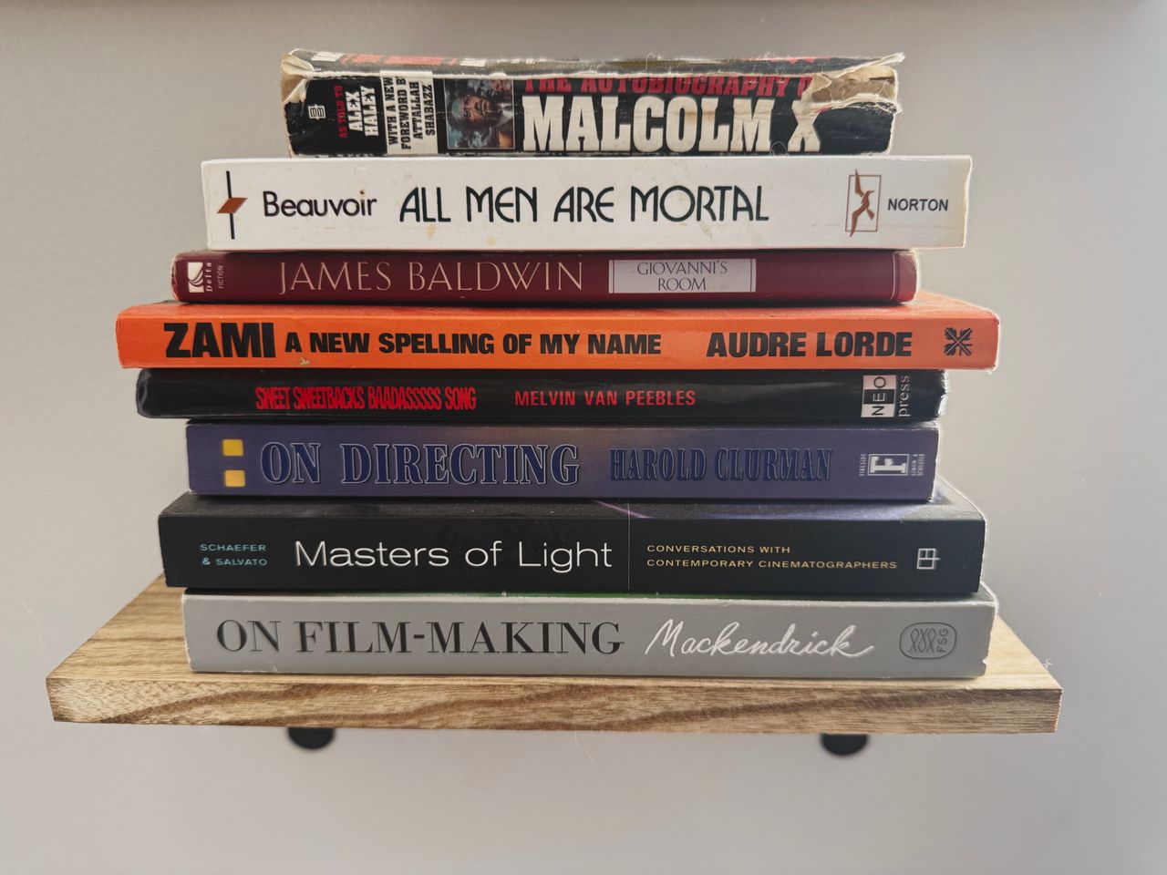 These are just a few of the many books that have inspired me through the years - Malcolm X, Simone de Beauvoir, Audre Lorde, Melvin Van Peebles, James Baldwin, and the craft guides that remind me filmmaking is both art and discipline.