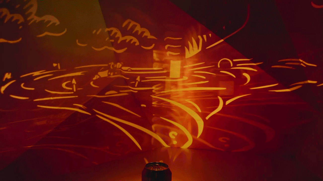 My favourite detail must be the arrows that appear on the background and on the front of the can at the same time. That was something super risky to do: to line the arrows up, everything had to be at the right place. The camera sensor, the light in the can, the can in the set, the set dimensions, the algorithms that projected the animation on the metal sheet - all had to match our plans exactly to pull that off. In fact, I was thinking it would be a nice bonus to get that right, but I wasn’t really believing we could do it. So it was really nice to see that actually happening.