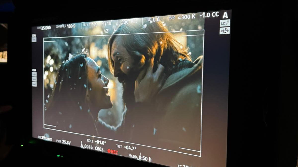 Above: Behind the scenes on the shoot of The Perfect Gift.