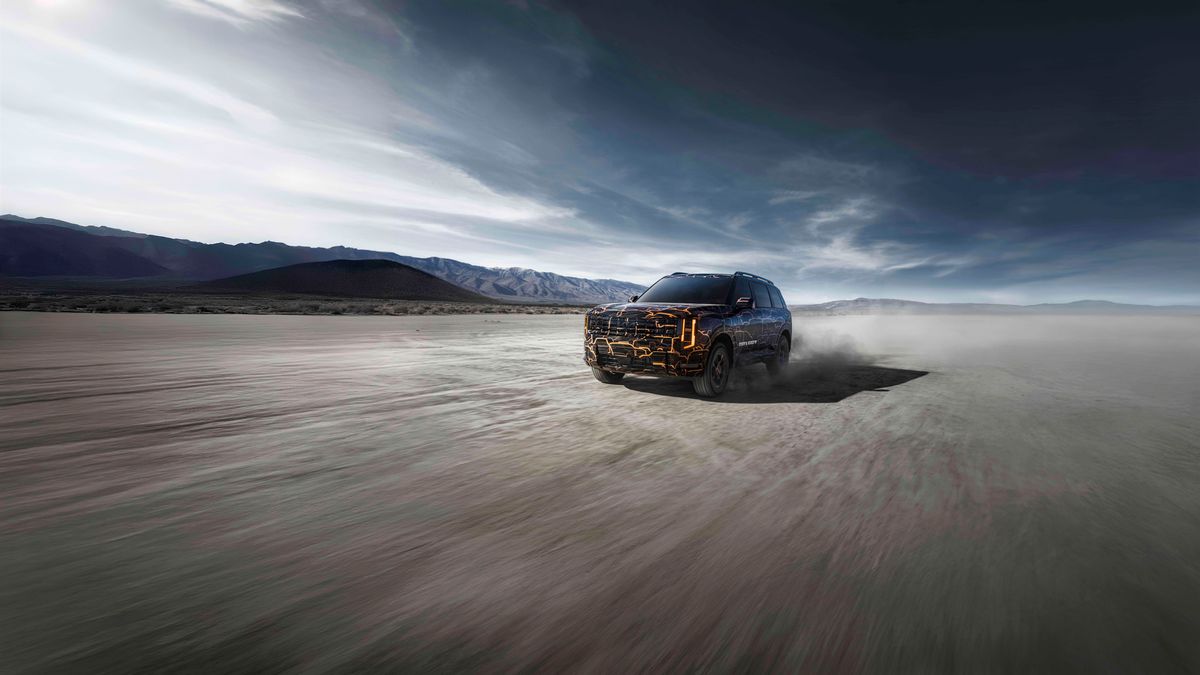 Cleverly disguised in a unique full-body wrap, the custom pre-production model is seen being put through a gruelling off-road trek, illustrating the SUV’s capabilities while coyly hiding its production sheet metal, which will be unveiled November 20 at the Los Angeles Auto Show. The new images and video of the camouflage Telluride, produced by longtime creative agency David&Goliath, follow the dramatic studio-based teaser images that were released October 22.