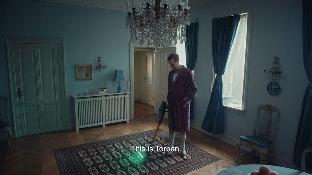 Rönkä adds: “It’s been fantastic working with a client that gave us so much creative freedom. They really listened to our recommendations, engaged in the creative discussions, and showed a level of trust I rarely experience. It allowed us to work with tonality and detail to a much higher degree, both in what we planned from the start, and in the things that emerged on the shooting days. Take, for example, Torben’s beard, which the idea for the style came about on the day when we saw the full outfit together on the set. Or the decision to include a huge chandelier in the frame, which, in vertical formats like 9:16, takes up quite a bit of space but adds significantly to the film’s visual universe.”