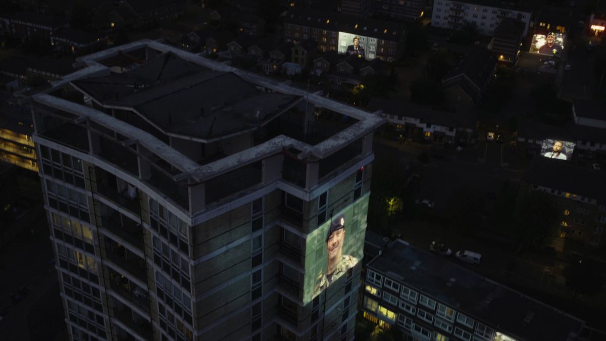 The film, directed by Zhang & Knight through Academy Films, sees images of veterans projected onto the front of British homes, revealing that they are a part of every community, and while their service may be over, the emotional struggle continues.